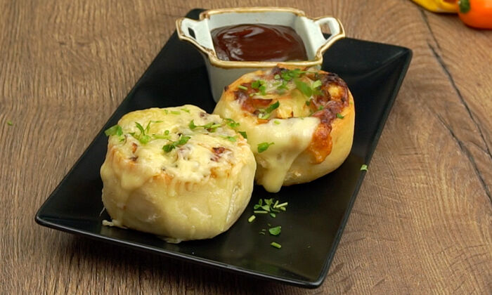 - Completare i rotoli di pizza con la mozzarella grattugiata e rimetterli in forno per 5 minuti a 200 °C per farli gratinare. Servire con prezzemolo tritato e salsa BBQ per un'esperienza di gusto speciale.